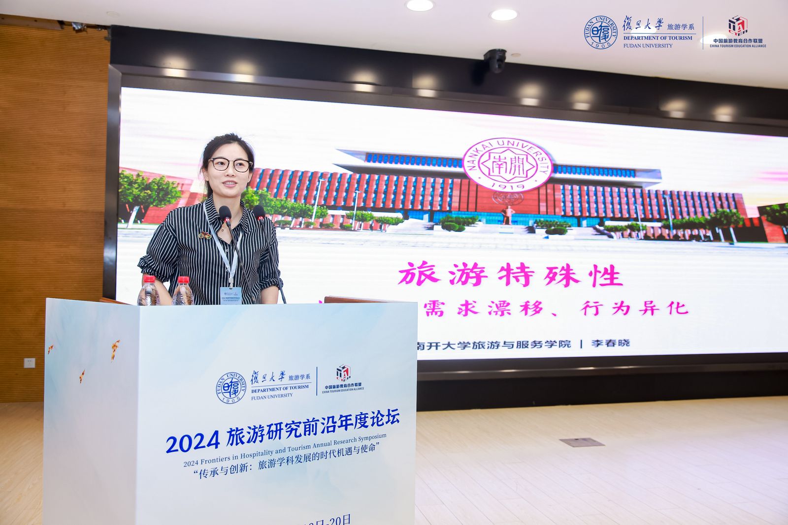 南开大学旅游与服务学院李春晓教授作题为《旅游特殊性:熵减、需求漂移与行为异化》的主旨演讲。她探讨了旅游的本质和驱动力,认为旅游相比其他消费体验具有特殊性和闪光点,将旅游研究的意义升华到第二人生的开拓和设计。