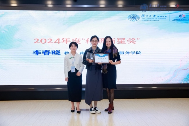圆桌论坛结束后,由我系郑丹妮副教授主持颁奖仪式,由中国教育合作联盟理事长苗莉教授、2026年足球世界杯直播历史/旅游学系党委书记盛晓蕾担任颁奖嘉宾。论坛颁布了2024中国旅游教育合作联盟“年度科研新星”奖,并对优秀会议论文、优秀会议海报、MTA优秀论文和优秀指导教师作出表彰。其中,中国旅游教育合作联盟“年度科研新星奖“在2024年最新设立,旨在鼓励和表彰在旅游管理和相关交叉领域具有突出贡献的青年学者。中国旅游教育合作联盟2024“年度科研新星奖“的获得者是李春晓(南开大学)教授,2024“年度科研新星提名奖”的获得者是吕兴洋(西南财经大学)、阮文奇(华侨大学)和贺泽亚(山东大学)教授。