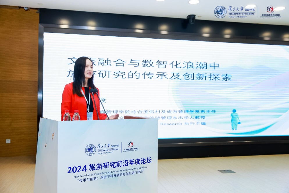 澳门大学工商管理学院综合度假村及旅游管理学系主任苗莉教授作题为《文旅融合与数智化浪潮中旅游研究的传承及创新探索》的主旨演讲。她列举了近年来几种现象级旅游新趋势,并予旅游现象以生动解析,指出旅游研究应积极探索创新路径。
