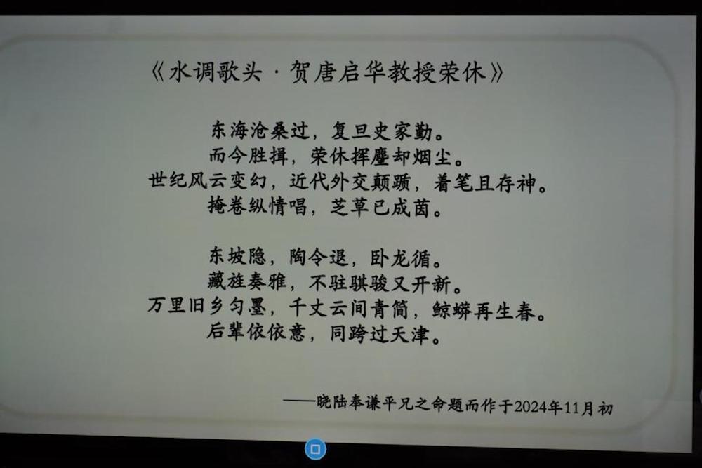 紧接着,学生代表为唐启华老师及其夫人献上精心准备的礼物,以表达他们深深的敬意与感激。