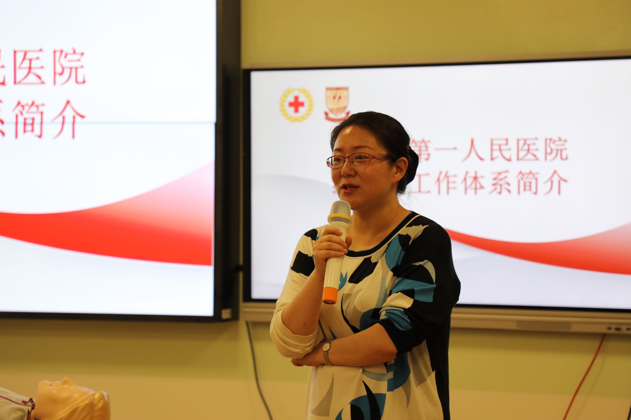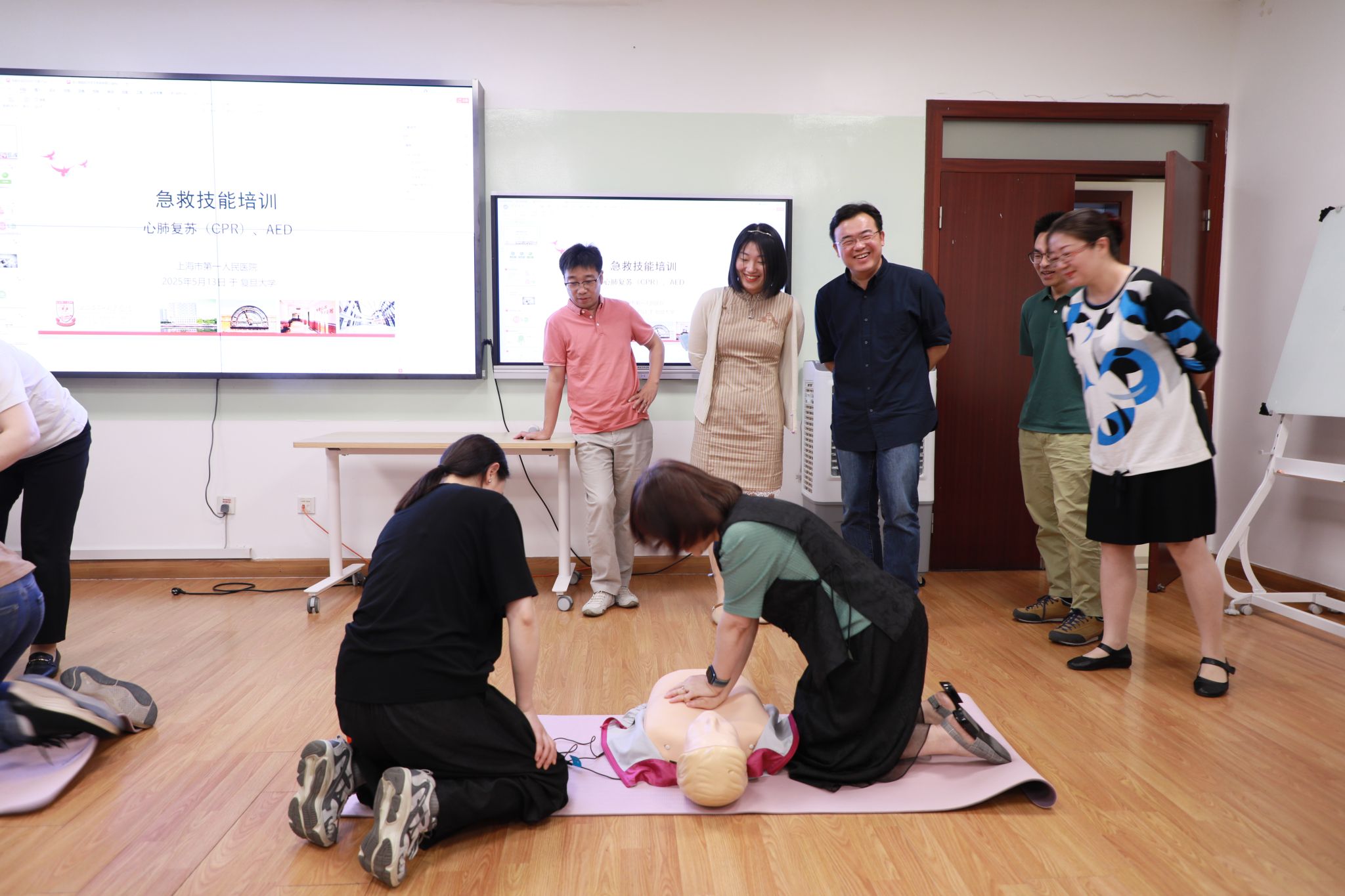 接着,历史学系师生党员聆听了市一医院体检中心副主任、红十字应急救护师朱彦琪老师关于心肺复苏(CPR)、体外除颤仪(AED)使用、气道异物梗阻急救(海姆利克)的理论知识培训。并参与了南部急诊科护士长、红十字应急救护师范仁静老师代领开展的40分钟心肺复苏及AED机器使用的实操训练。