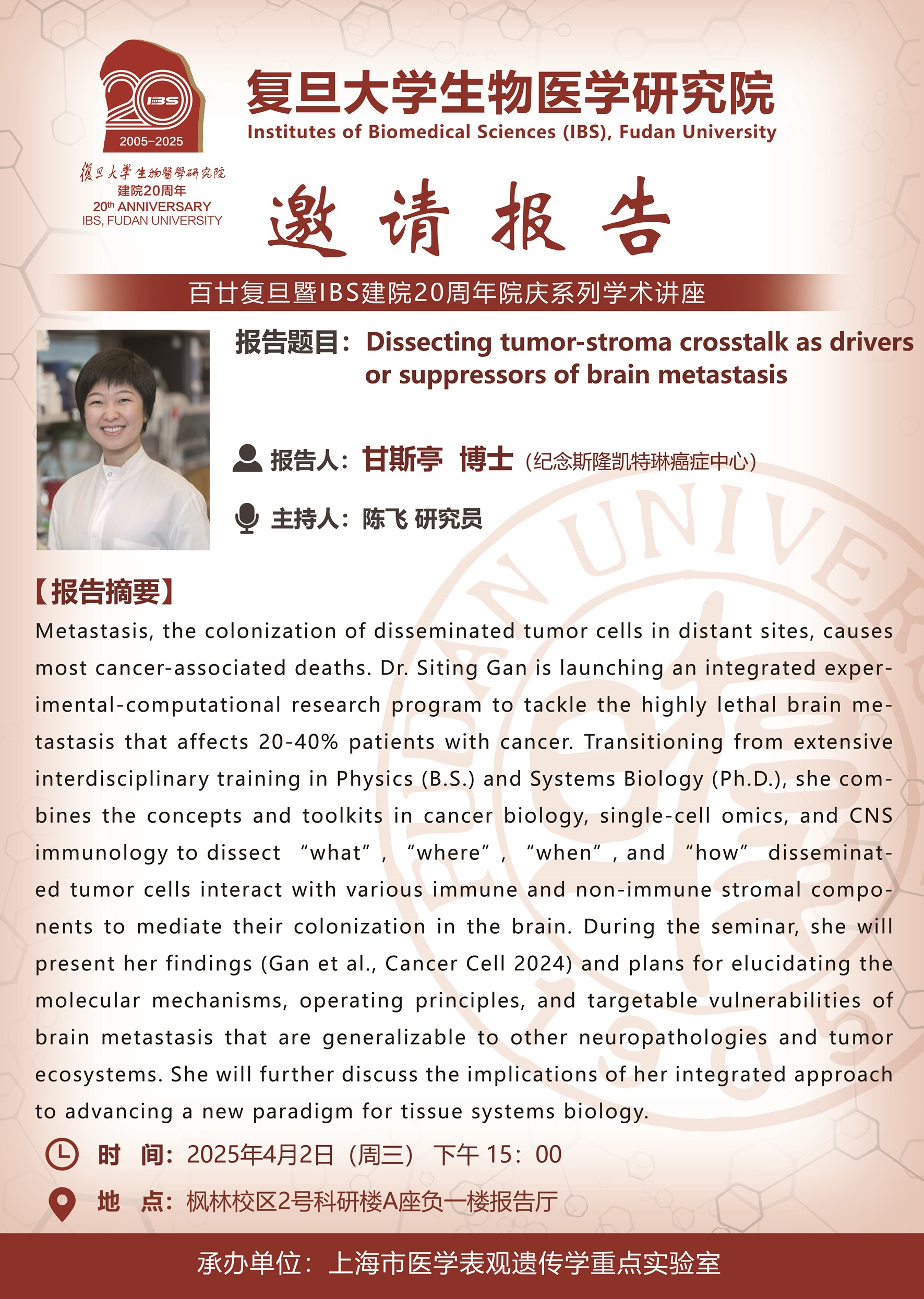 IBS建院20周年系列报告——《Dissecting tumor-stroma crosstalk as drivers or suppressors of brain metastasis》