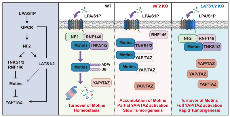 该研究发现了一条全新的NF2-Motins调控通路,完善了Hippo信号通路上游因子的互作关系。同时该研究为NF2突变相关肿瘤的发生发展提供了全新的理论基础,为后续的临床治疗提供了新的思路。