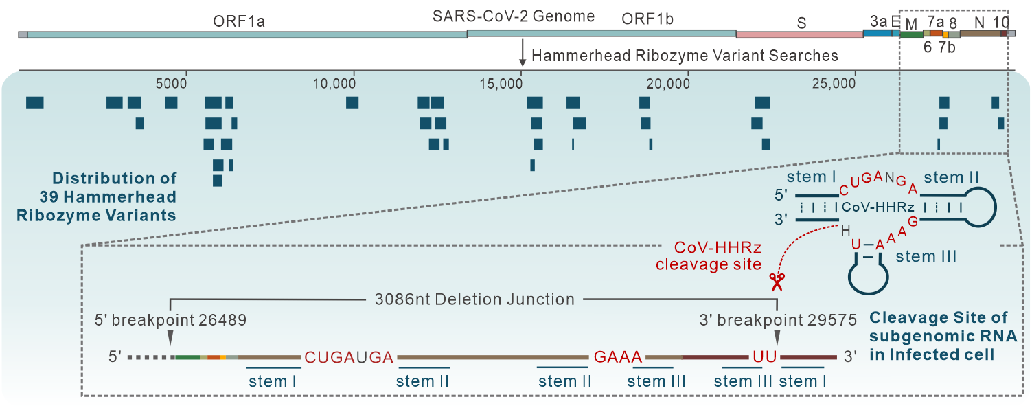该研究首次揭示了SARS-CoV-2基因组中的天然核酶及其所具备的体内、外RNA自剪切催化活性,为开发针对多种SARS-CoV-2突变株的广谱治疗手段提供了新的RNA靶标,同时为核酶催化活性的干预为治疗长期新冠提供了新思路。