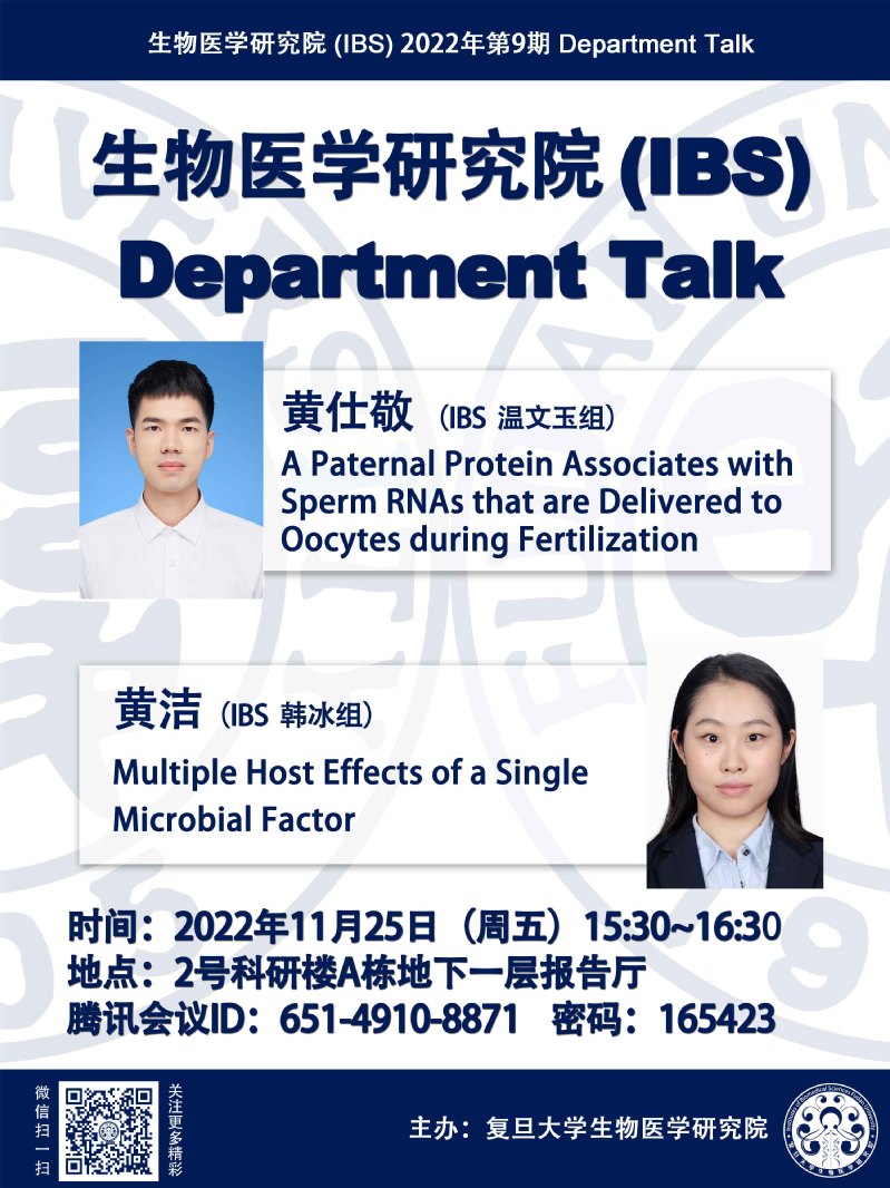 生物医学研究院Department Talk系列 11月25日(周五)下午15:30-16:30