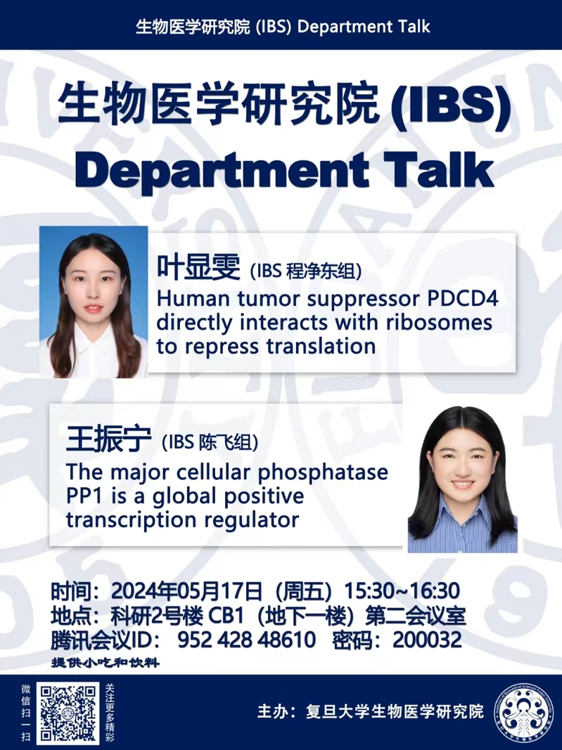 生物医学研究院Department Talk系列 5月17日(周五)下午15:30-16:30