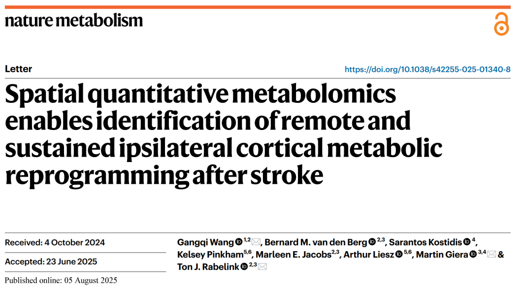 Nature Metabolism 丨王罡琦等开发空间定量代谢组学检测方法并揭示脑卒中后大脑代谢重塑