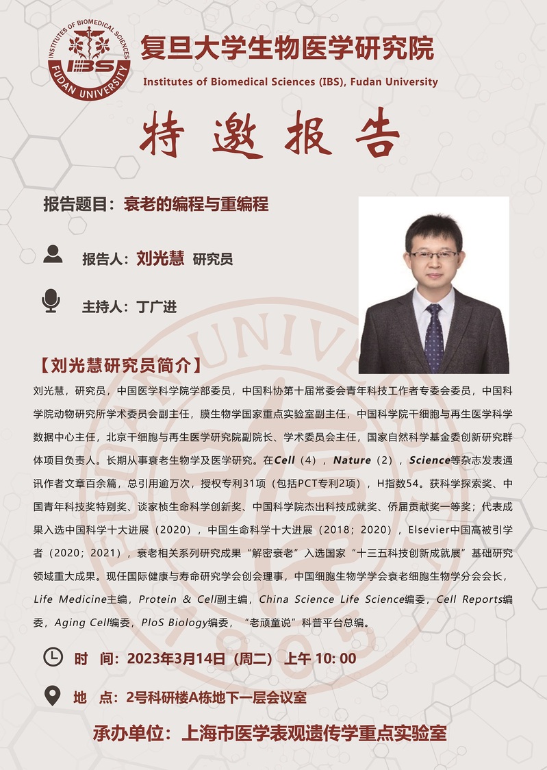 特邀报告:衰老的编程与重编程(3月14日,周二,上午10:00)