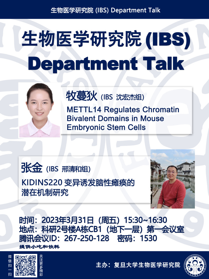 生物医学研究院Department Talk系列 3月31日(周五)下午15:30-16:30
