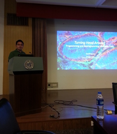 2016年4月8日下午,来自美国威斯康星大学的陆建峰博士在枫林校区治道楼八角厅为我院师生作了一场精彩的学术报告,主题名为“Turning Head Around: Programming and Reprogramming Hindbrain Cell”。报告会由我院表观遗传学实验室谭理副研究员主持。