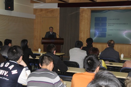 3月25日下午两点, 上海交通大学医学院附属瑞金医院终生教授,国家人类基因组南方研究中心,伦理、法律和社会问题研究部顾问组组长,上海医药临床研究中心,独立伦理委员会主任,卫生部医学伦理专家委员会委员,联合国教科文组织,国际生命伦理委员会委员胡庆灃教授来我院做了名为“生物医学研究的伦理思考”的讲座。吸引了我院和基础医学院的许多听众,会场反响热烈。