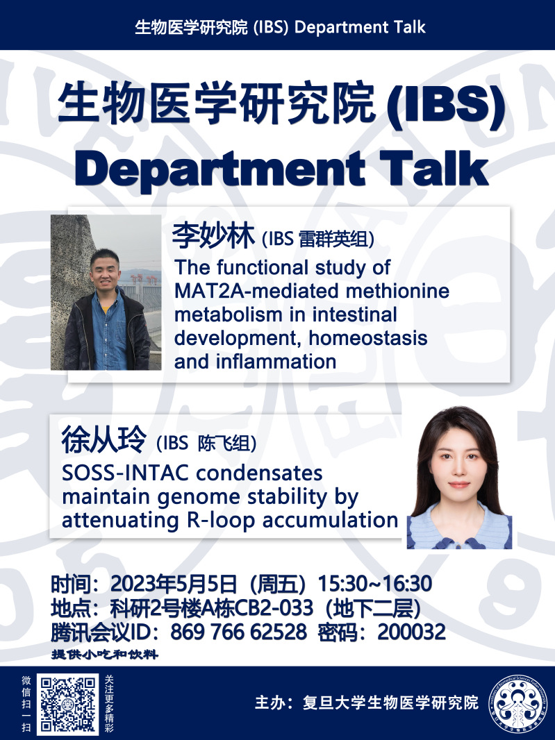 生物医学研究院Department Talk系列 5月5日(周五)下午15:30-16:30