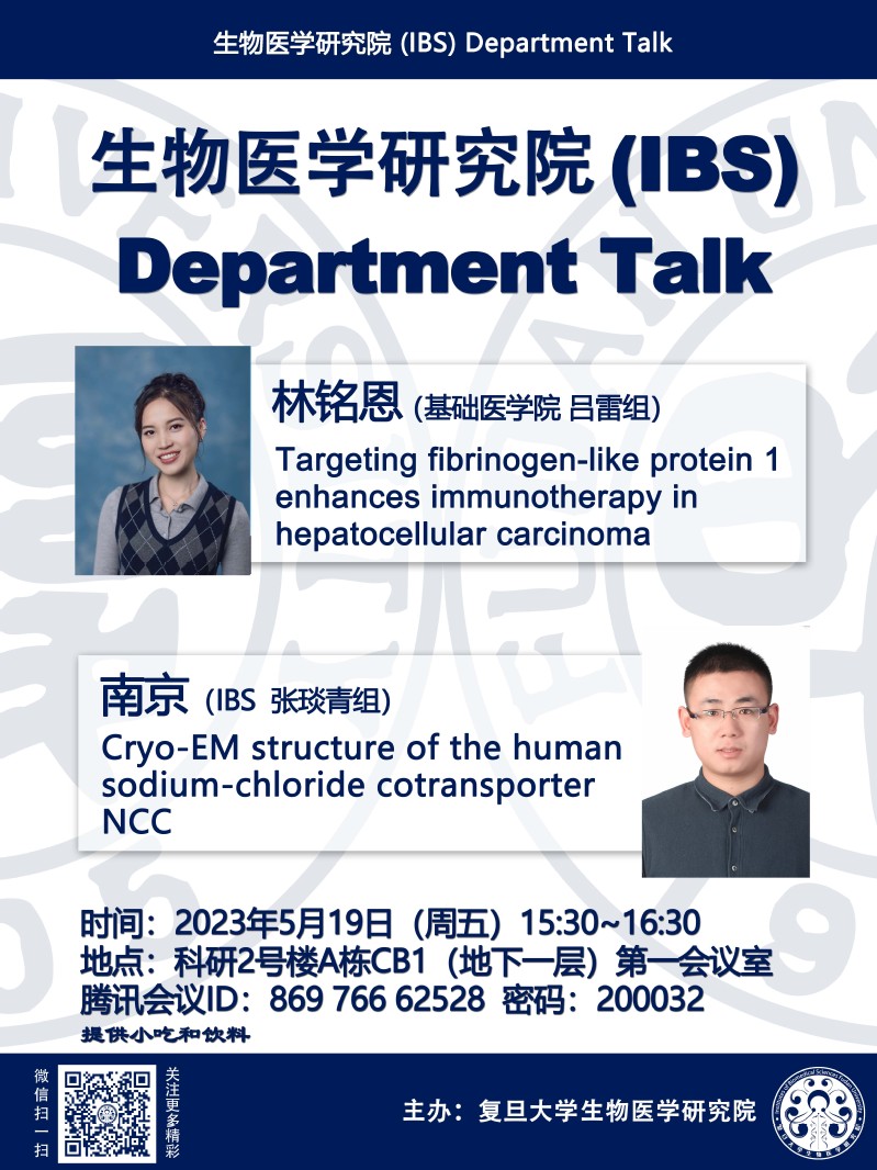 生物医学研究院Department Talk系列 5月19日(周五)下午15:30-16:30
