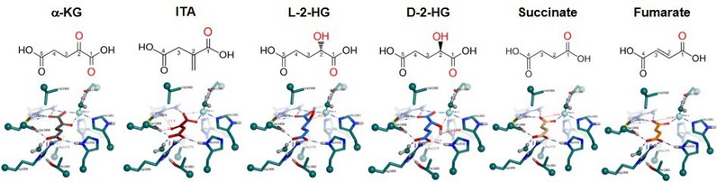 图1. 衣康酸能够结合TET2蛋白催化中心