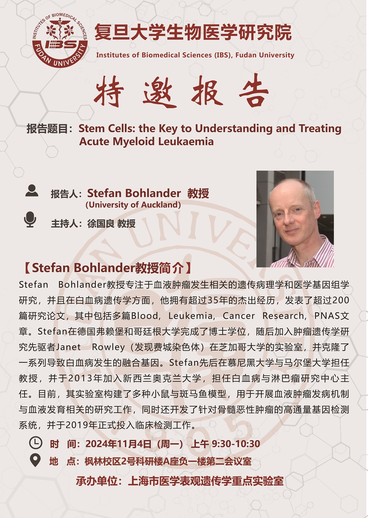 特邀报告:Stem Cells: the Key to Understanding and Treating Acute Myeloid Leukaemia