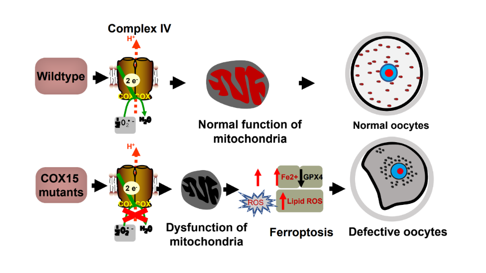 PNAS丨王磊/桑庆团队与合作者发现线粒体呼吸链蛋白COX15缺陷诱导铁死亡导致人卵退化