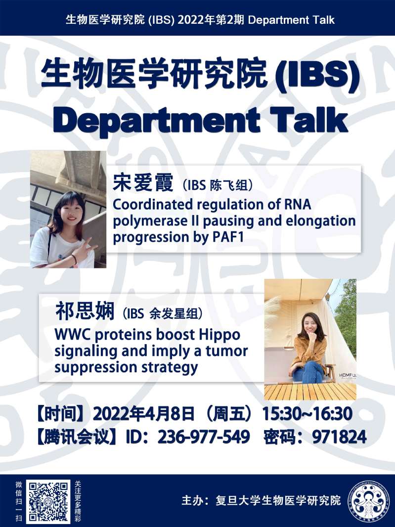 生物医学研究院Department Talk系列(宋爱霞、祁思娴)-4月8日下午15:30(线上)