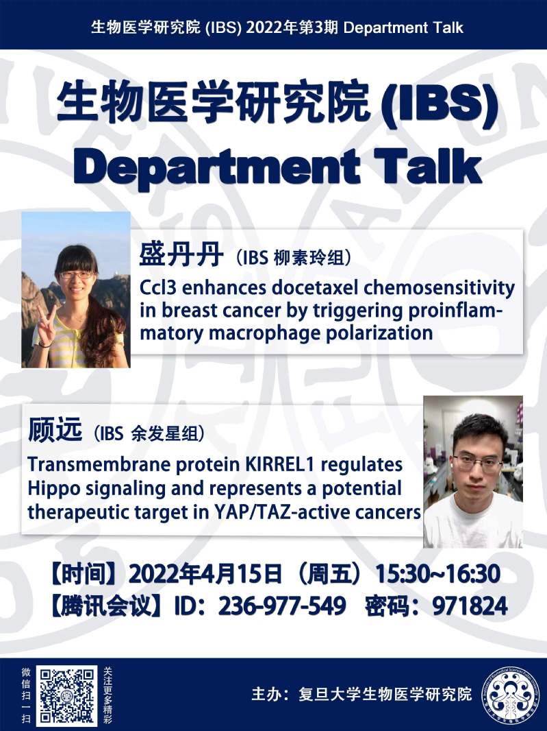 生物医学研究院Department Talk系列(盛丹丹、顾远)-4月15日下午15:30(线上)