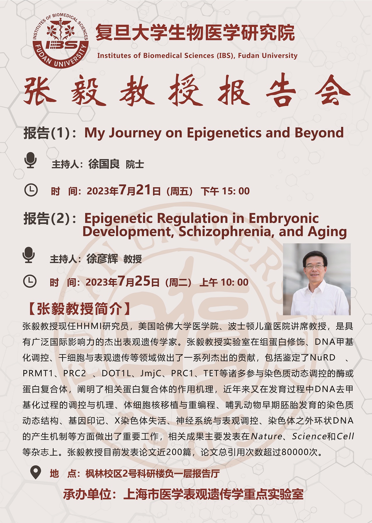 特邀报告:Epigenetic Regulation in Embryonic Development, Schizophrenia, and Aging
