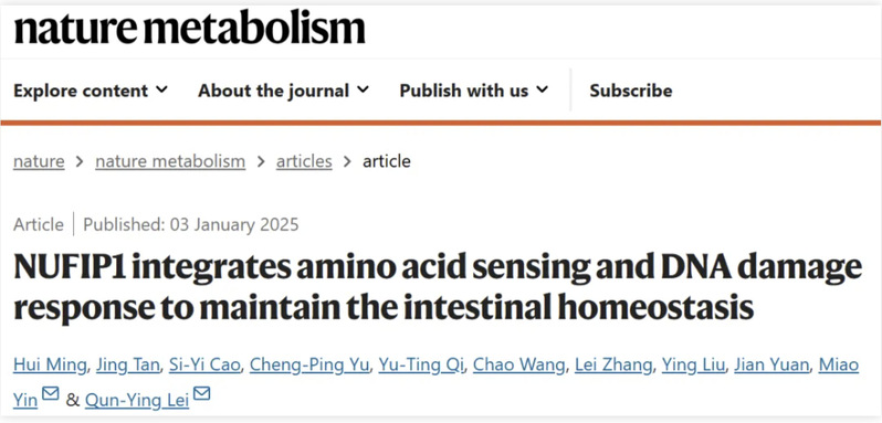 Nat Metab | 雷群英团队揭示由NUFIP1介导的氨基酸感知在DNA损伤应答中的机制及其在肠道上皮稳态维持中的关键作用