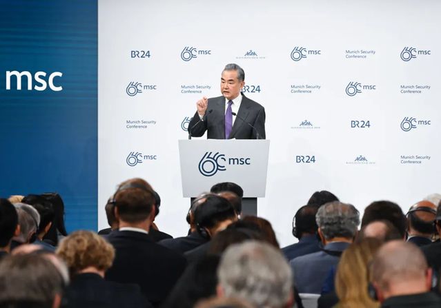 2月17日,中共中央政治局委员、外交部长王毅出席慕尼黑安全会议,在“中国专场”发表题为《坚定做动荡世界中的稳定力量》的主旨讲话。图/外交部