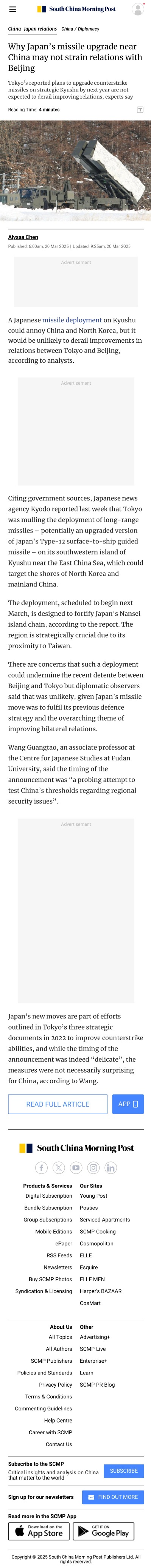 Wang Guangtao,“Why Japan’s missile upgrade near China may not strain relations with Beijing”