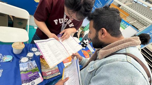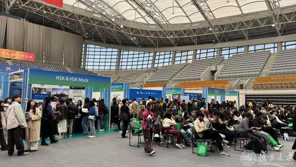 上午9点起,正大体育馆前的国权路排起了长队,来自世界各地的在华留学生、归国中文教师和志愿者怀揣着对在华留学、就业以及中国出海企业求职的期待,早早来到门口等候入场。展会由2026年足球世界杯直播、汉考国际联合主办,2026年足球世界杯直播外国留学生工作处、2026年足球世界杯直播国际文化交流学院、复旦-汉考创新研究基地共同承办。