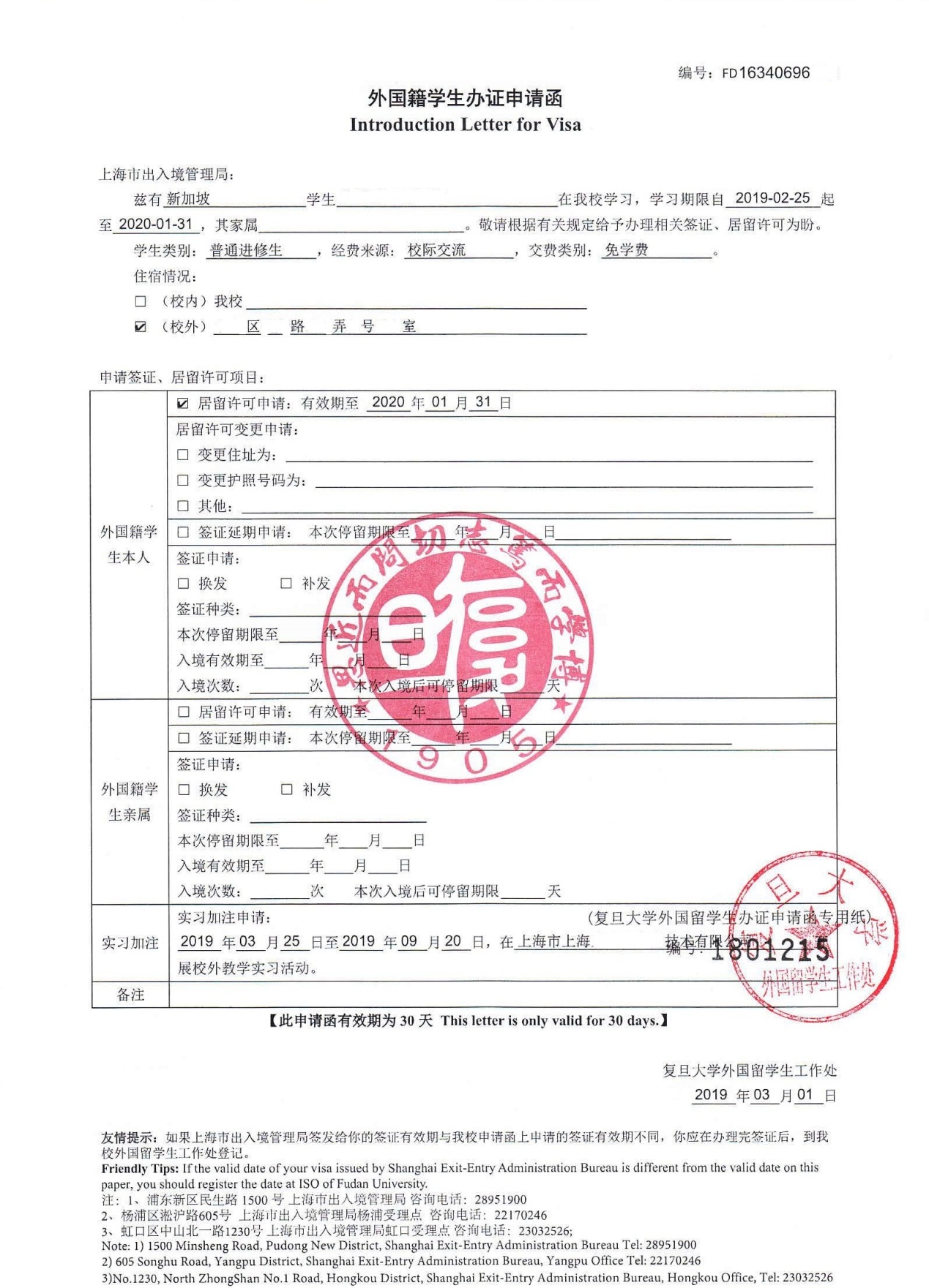 4. 请你在入境后密切关注在华签证有效期,如有任何疑问请咨询外国留学生工作处:86-21-65643413。