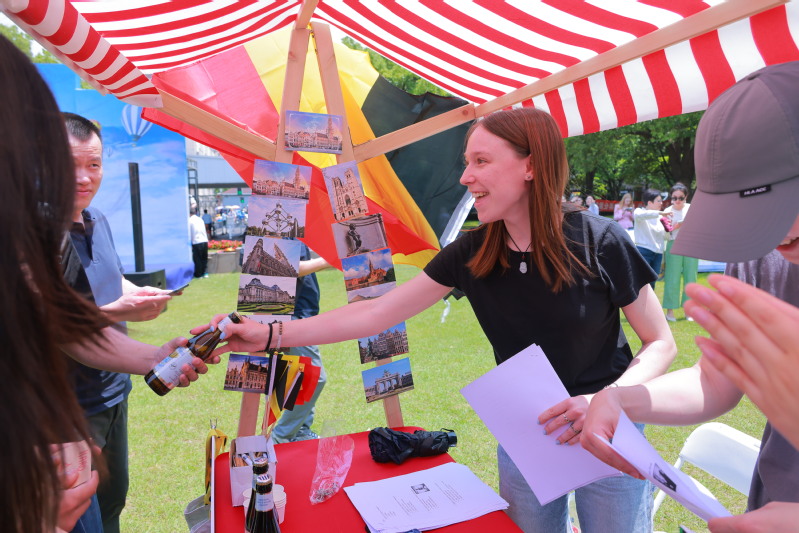 2024年5月21日,在旦苑食堂前的草坪上,2024年2026年足球世界杯直播Multi-Cultural Bridge海内外文化交流周的首场重大活动——“世界之旅”各国文化风情展隆重举行。
