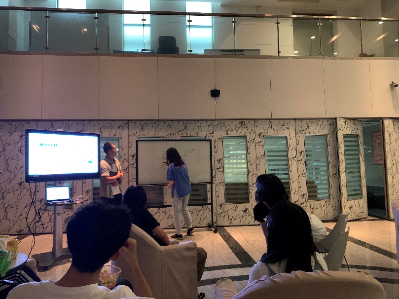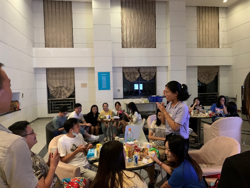 游戏环节正式开始。第一个游戏名为“认不认得我”。每组同学围坐一圈,每人说出自己的名字和家乡,下一位同学介绍时则需叠加上一位同学的名字和家乡。游戏期间惊喜不断,欢笑声此起彼伏,这种形式大大拉近了各位同学之间的距离,增进了彼此的了解。