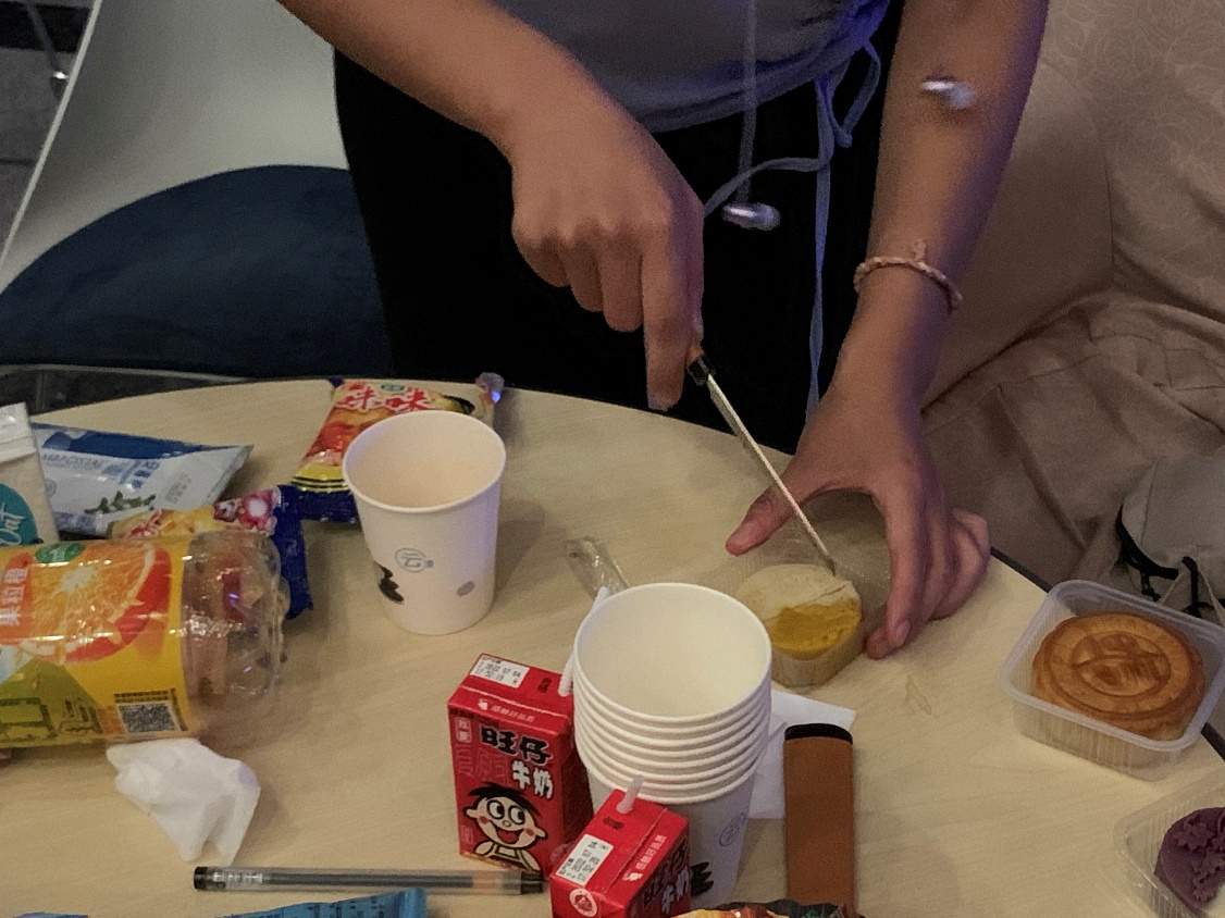 活动期间,先进材料实验室2022级的新生辅导员王慧宁老师为同学们亲手切了月饼,代表院系为同学们送上了诚挚的祝福,并希望大家能够借助这次活动拉进大家的距离,收获一个快乐的假日夜晚。