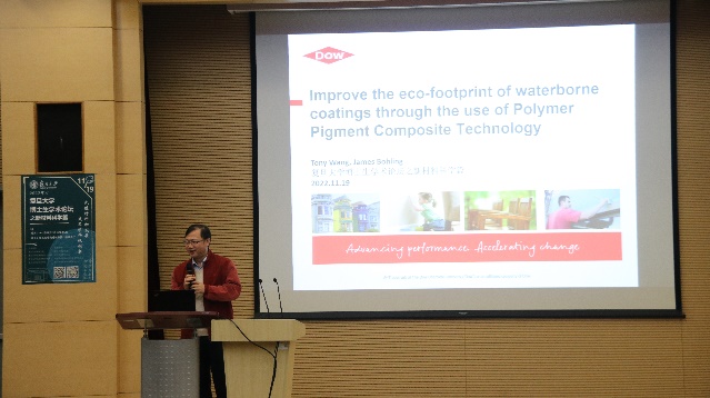 本次论坛特邀陶氏化学核心研发资深科学家王涛、材料系杰出系友信和新材料股份有限公司总经理王书传、为师生带来前沿材料的应用及行业发展。