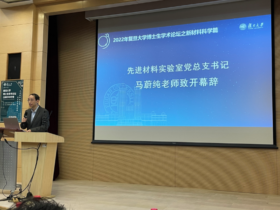 论坛的开幕式上,先进材料实验室党总支书记马蔚纯老师和材料科学系党委书记于瀛老师分别致辞,向出席论坛的嘉宾、老师和同学表示热烈的欢迎。于瀛老师表示,一代材料、一代技术、一代装备、一代产业是业界和学界对材料的共识,本次论坛的主题具有时代意义和感召力。党的二十大开启了中国式现代化、中华民族伟大复兴的新征程,期待同学们能够肩负起科技创新、科技强国的历史使命,把握新一轮科技革命和产业革命的重大机遇。随后,马蔚纯老师充分肯定了学生们对待科研积极进取的态度,简要介绍了材料系与先进材料实验室交流与合作的过往,强调本次论坛在促进学科融合方面达到新的境界,鼓励广大师生在交流中成长,在探讨中进步。最后马蔚纯老师宣布论坛正式开幕。