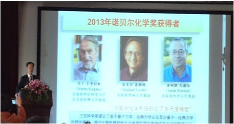系列科普报告会之 “化学奖”的解读活动于2013年12月10日在上海科学会堂1号楼2楼的卢浮厅进行。本次解读活动由中科院上海有机研究所所长丁奎岭主持,由中科院上海药物研究所副所长蒋华良作解读报告,还有两名对话嘉宾与在场听众及网友进行互动,他们分别是华东理工大学药学院副院长唐赟、文汇报科技部袁主任江世亮。