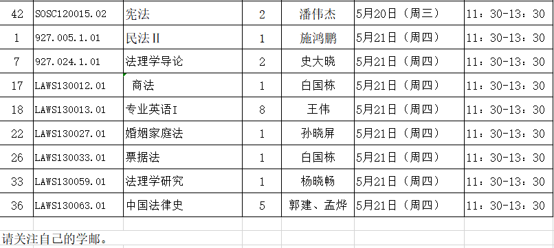 2019-2020学年第一学期法学院本科生补考、缓考、缺考安排
