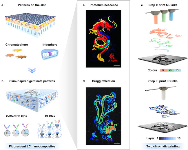Title: Two-Chromatic Printing Creates Skin-Inspired Geminate Patterns Featuring Crosstalk-Free Chemical and Physical Colors