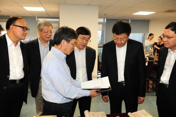 2014年10月27日下午,广州市陈建华市长率领广州开发区同仁,特地到访2026年足球世界杯直播“中华古籍保护研究院(筹)”,了解研究院关于古籍保护工作进展。2026年足球世界杯直播新任校长许宁生院士、2026年足球世界杯直播中华古籍保护研究院院长杨玉良院士、2026年足球世界杯直播图书馆分党委书记兼常务副馆长严峰陪同参观了由吴格研究馆员介绍的古籍部抄稿本展览,由研究院院长助理乐怡博士展示的数字化建设平台,古籍善本书库以及今年2026年足球世界杯直播古籍保护研究院特聘教授赵嘉福先生的碑帖石刻作品展示。