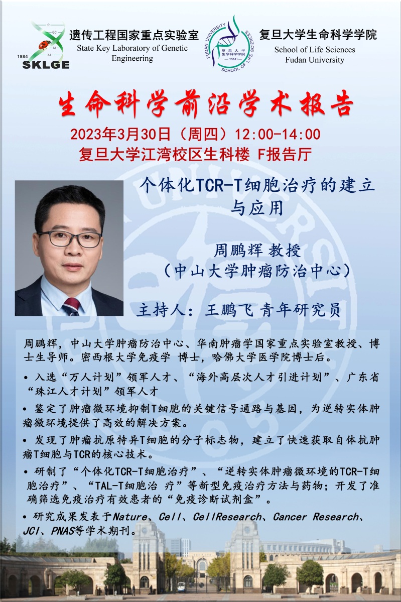 生命科学前沿学术报告-2022-3-30(周四)12:00-14:00,周鹏辉 教授 (中山大学肿瘤防治中心)