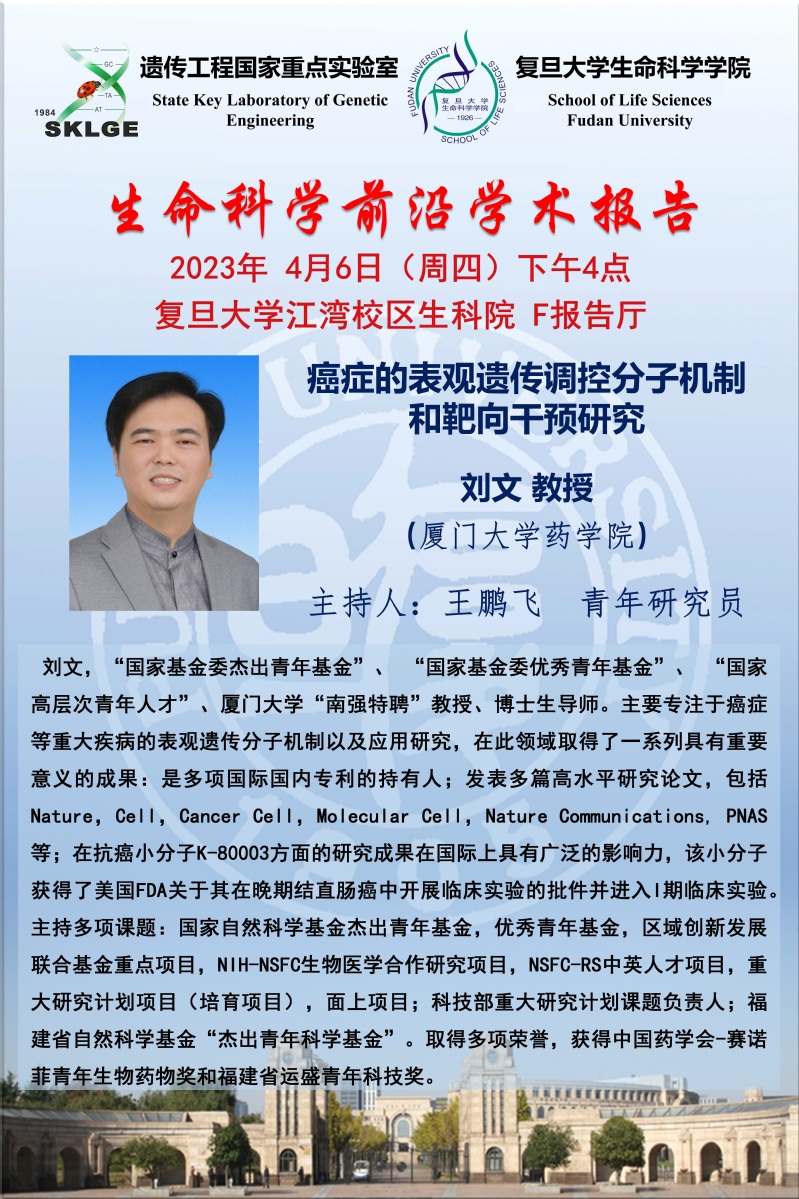 生命科学前沿学术报告-2022-4-6(周四)下午16:00,刘文 教授 (厦门大学药学院)