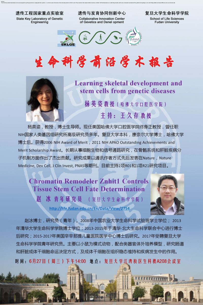 生命科学学术前沿讲坛【101】20180627:杨英姿教授(哈佛大学) 、赵冰(复旦生科院)