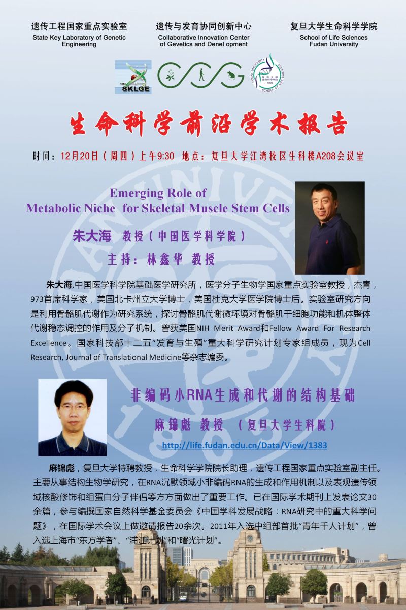 生命科学学术前沿讲坛【107】20181220:朱大海(中国医学科学院) 、麻锦彪(复旦生科院)