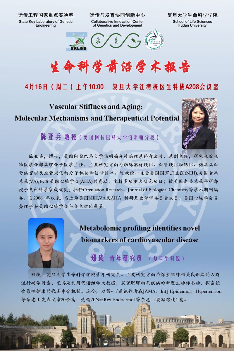 生命科学学术前沿讲坛【113】20190416:陈亚兵教授(美国阿拉巴马大学)、郑琰青年研究院(复旦生科院)