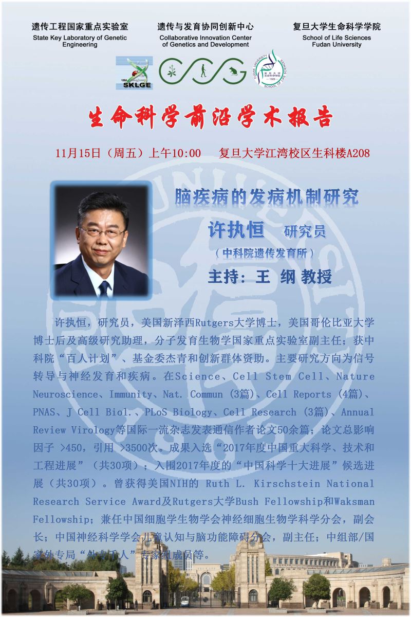生命科学学术前沿讲坛【123】20191115:许执恒(中科院遗传发育研究所)