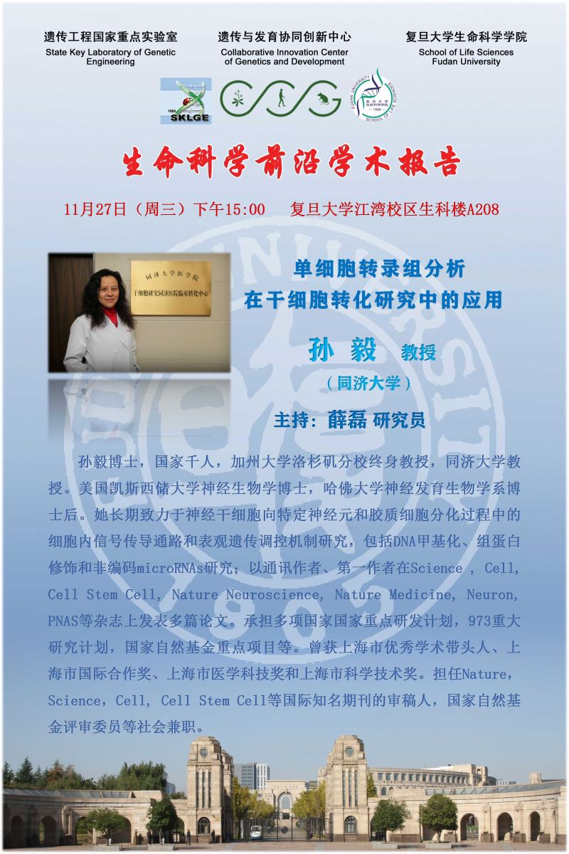 生命科学学术前沿讲坛【127】20191127:孙毅 教授(同济大学)