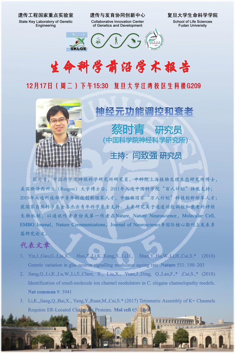 生命科学学术前沿讲坛【128】20191217:蔡时青 研究员(中科院神经所)