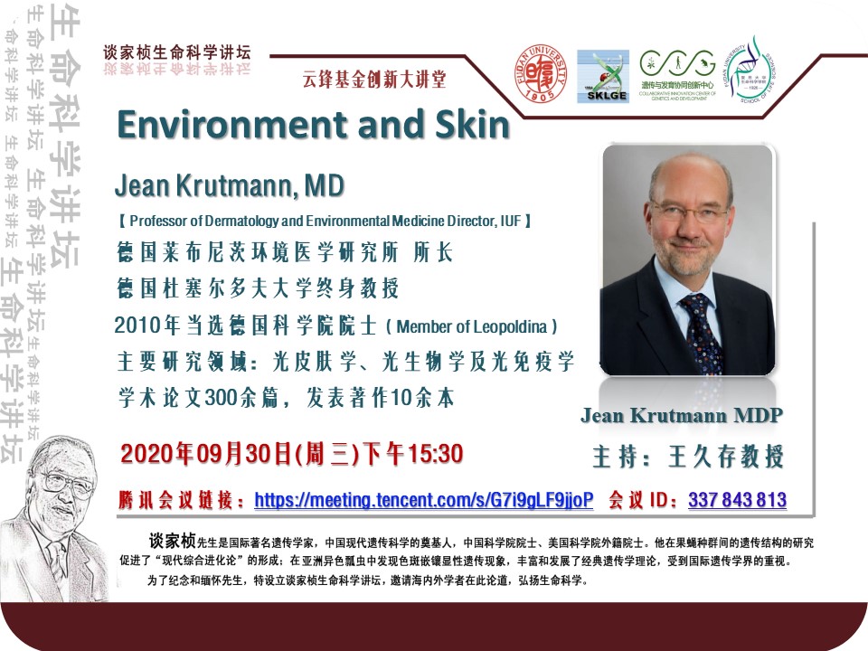 谈家桢生命科学讲坛20200930【82】:Jean Krutmann, MD(德国莱布尼茨环境医学研究所)