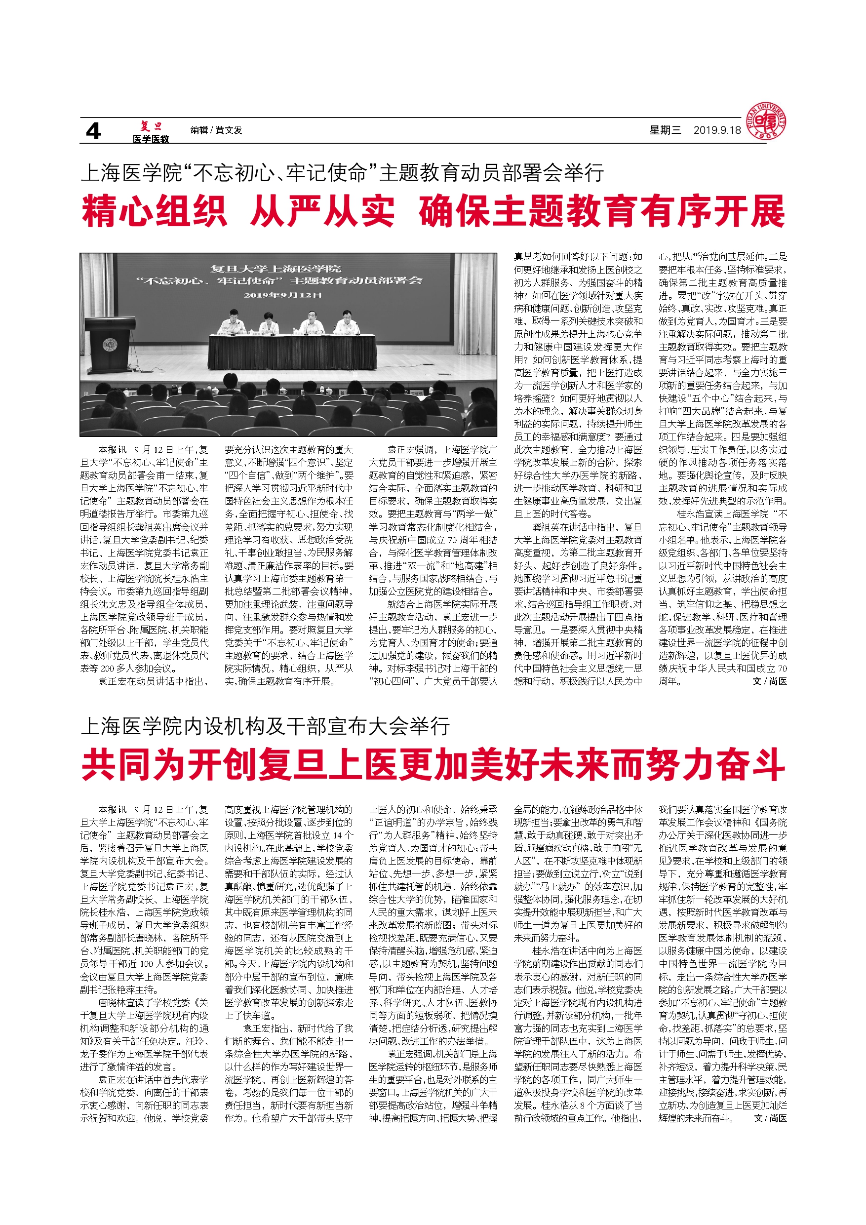上海医学院内设机构及干部宣布大会举行 共同为开创复旦上医更加...