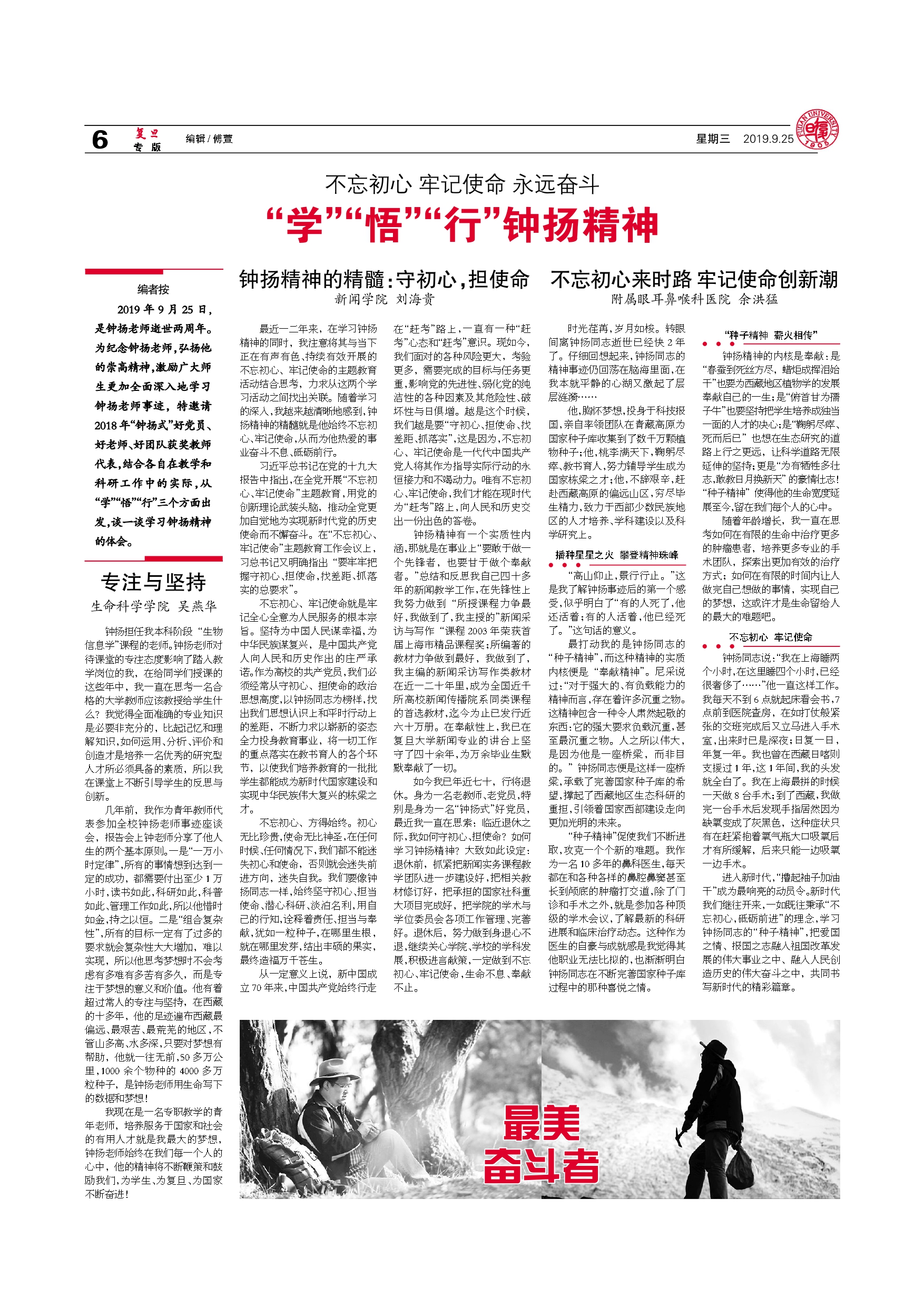 不忘初心 牢记使命 永远奋斗 “学”“悟”“行”钟扬精神