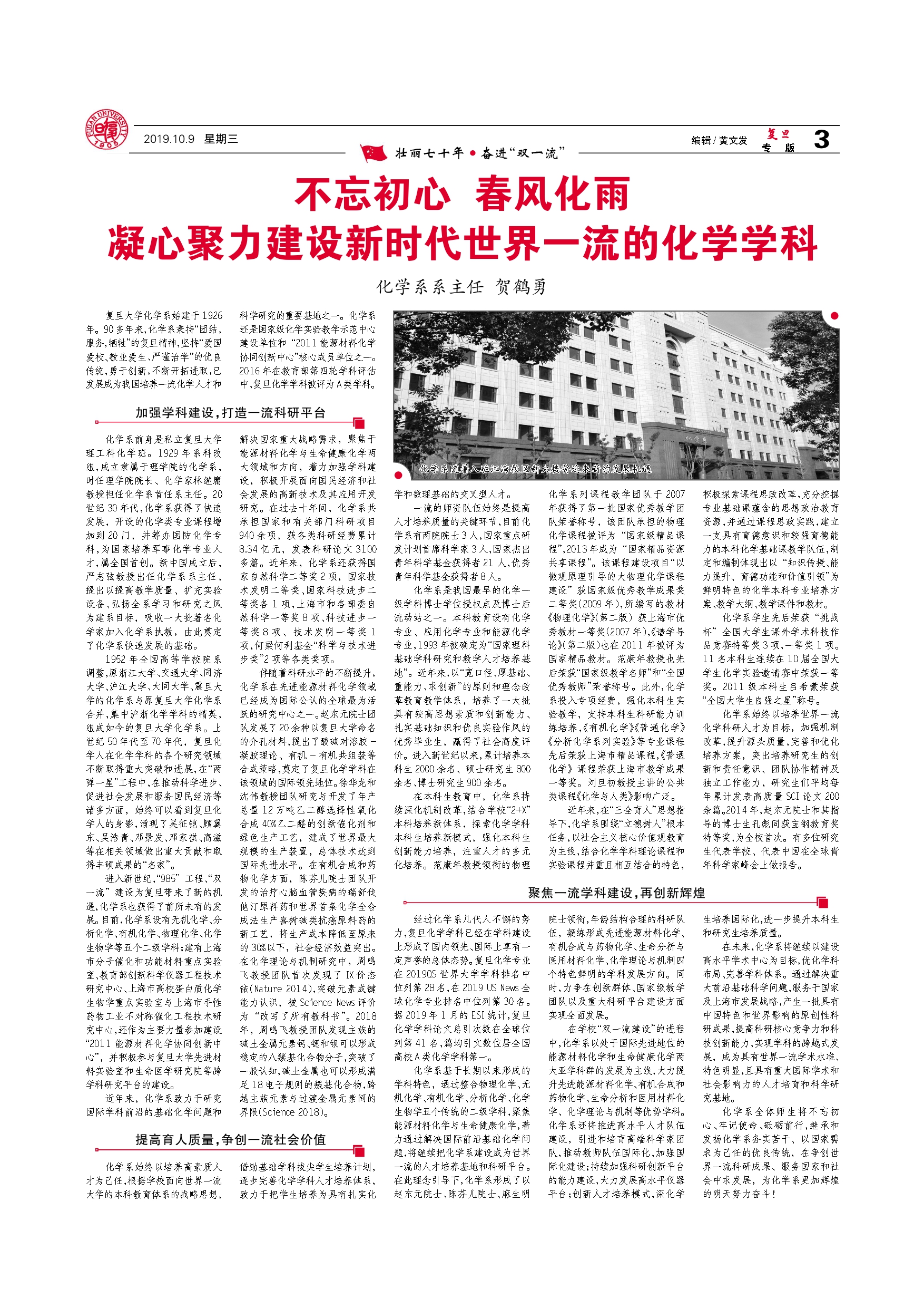 不忘初心 春风化雨 凝心聚力建设新时代世界一流的化学学科