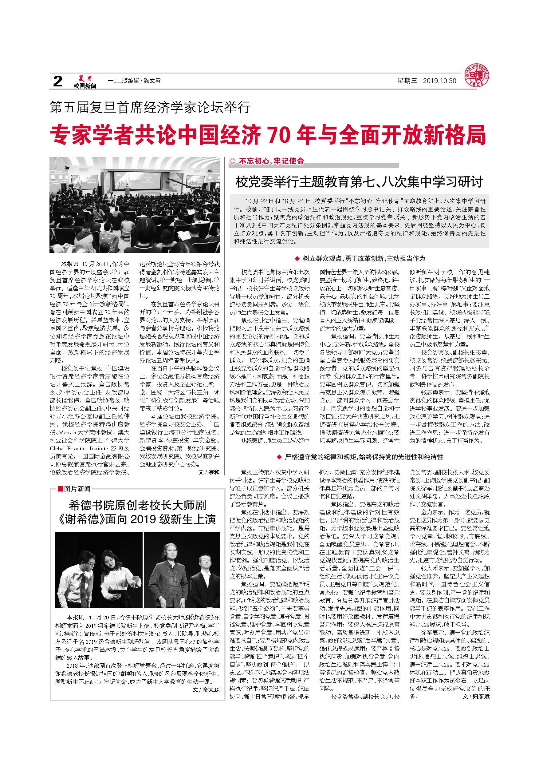 10月22日和10月24日,校党委举行“不忘初心、牢记使命”主题教育第七、八次集中学习研讨。校领导班子同一线党员师生代表一起围绕学习总书记关于群众路线的重要论...
